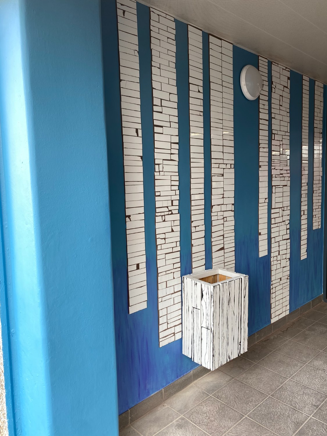 Pour le projet, les élèves ont retenu l’autre signification possible du nom du collège : celle d’un bois dur, comme le bouleau. La mosaïque a donc été conçue pour reproduire l’apparence de troncs avec leur écorce stylisée.
