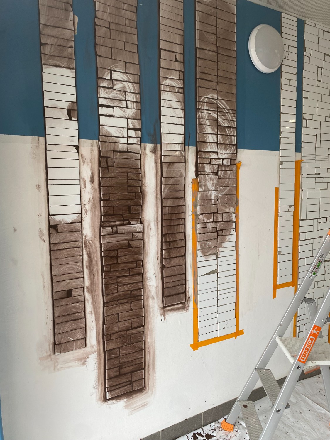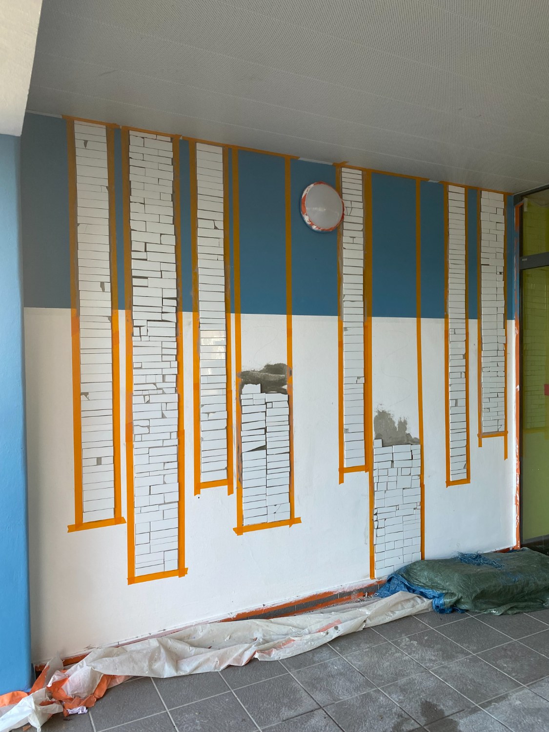 Le chantier s’est déroulé sur environ six semaines, à raison de six heures par semaine. Il a permis aux élèves de se familiariser avec des techniques de peinture ainsi que la pose de carrelages et de mosaïques.